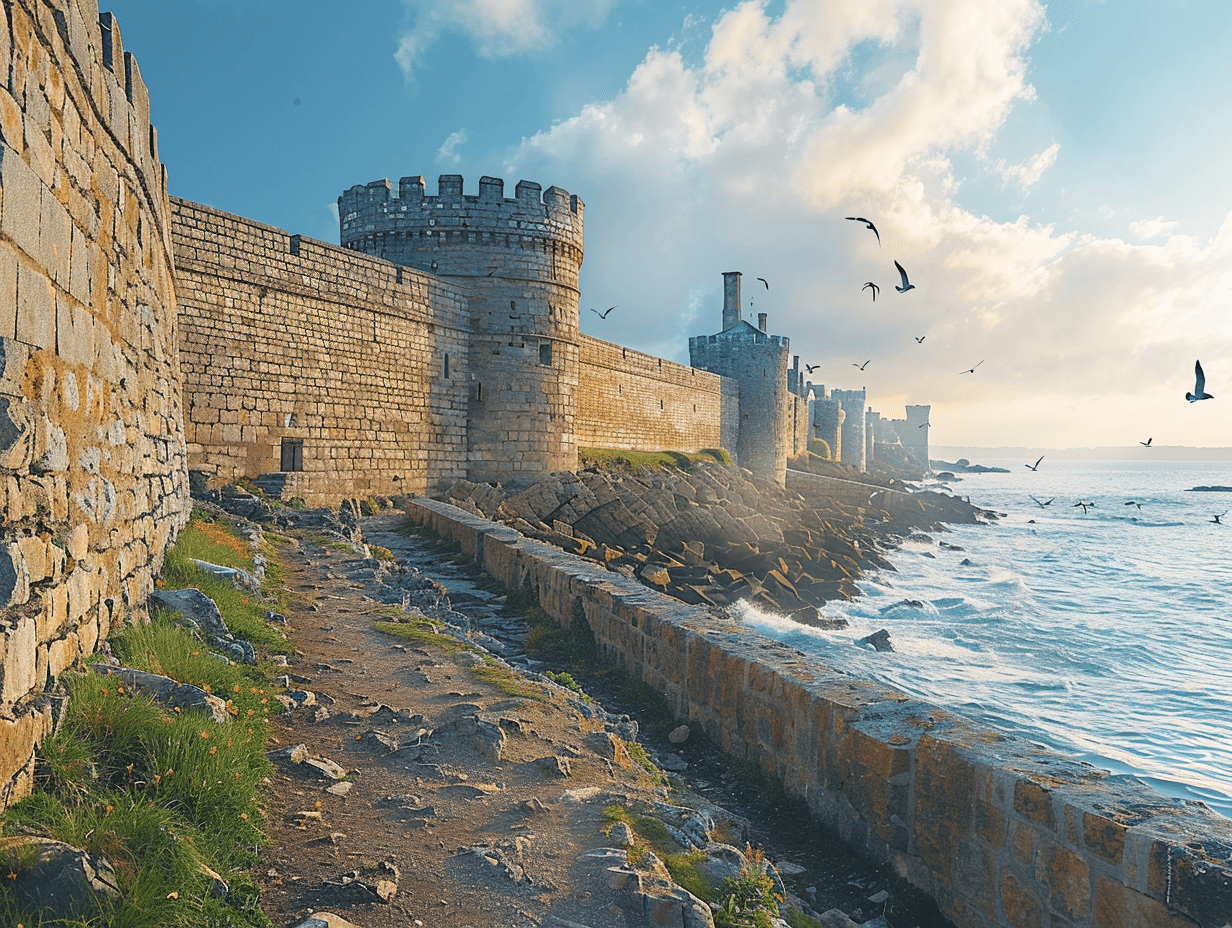 L’exploration des remparts de Saint-Malo, bastion de la cité corsaire, offre une plongée dans l’histoire maritime de la Bretagne. Depuis cette enceinte fortifiée, la vue sur la mer et les îles environnantes est imprenable, rappelant le rôle stratégique de la ville. Les fortifications, érigées au XVIIe siècle par Vauban, témoignent de l’ingéniosité militaire de l’époque.